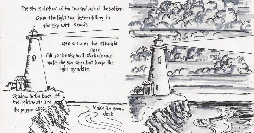 #Lighthouse | An easy printable drawing lesson and a free worksheet for the young artist.